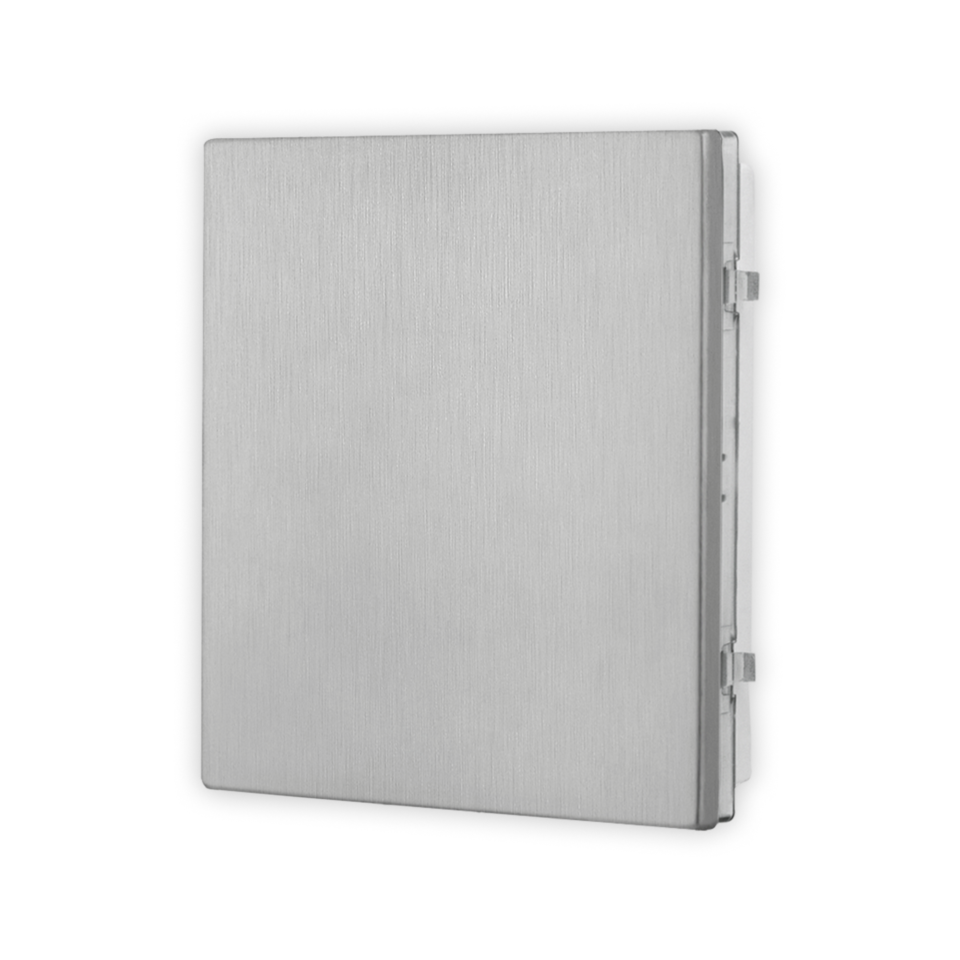 Blanking module 4000 Series for IPure, VX2300 and GSM systems. AISI 316 brushed stainless steel plate (marine grade) that provides durability in installations subject to atmospheric agents and in the vicinity of marine environments. Dimensions 103x120x43mm. 1 module.