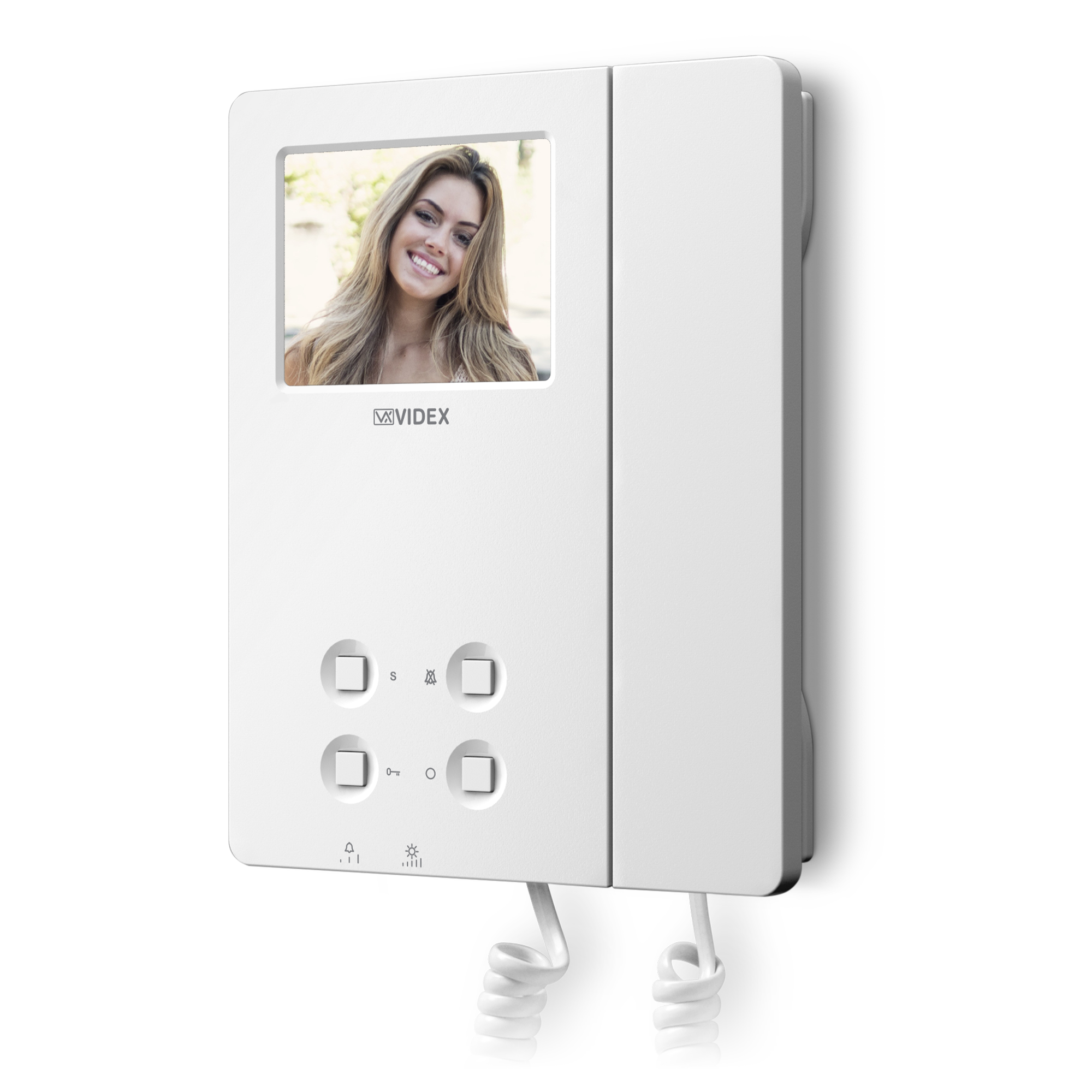 6200 series video intercom for VX2300 system with handset, 3.5” LCD TFT monitor, 4 tactile buttons for preset functions: conversation/ auto ignition, door opener, intercom call, camera switching/privacy service and remote relay activation Cod. 2305. Local call input. Adjust contrast, brightness, call volume and privacy. Multiple intercom function through dedicated button for up to 4 devices in the same column or junction box. Device configuration via dip-switch. White ABS material. Power supply from BUS or optional 12Vdc with Cod. 323/12. Dimensions: 144x182x27mm. Wall-mounted, optional table base cod. 62931.