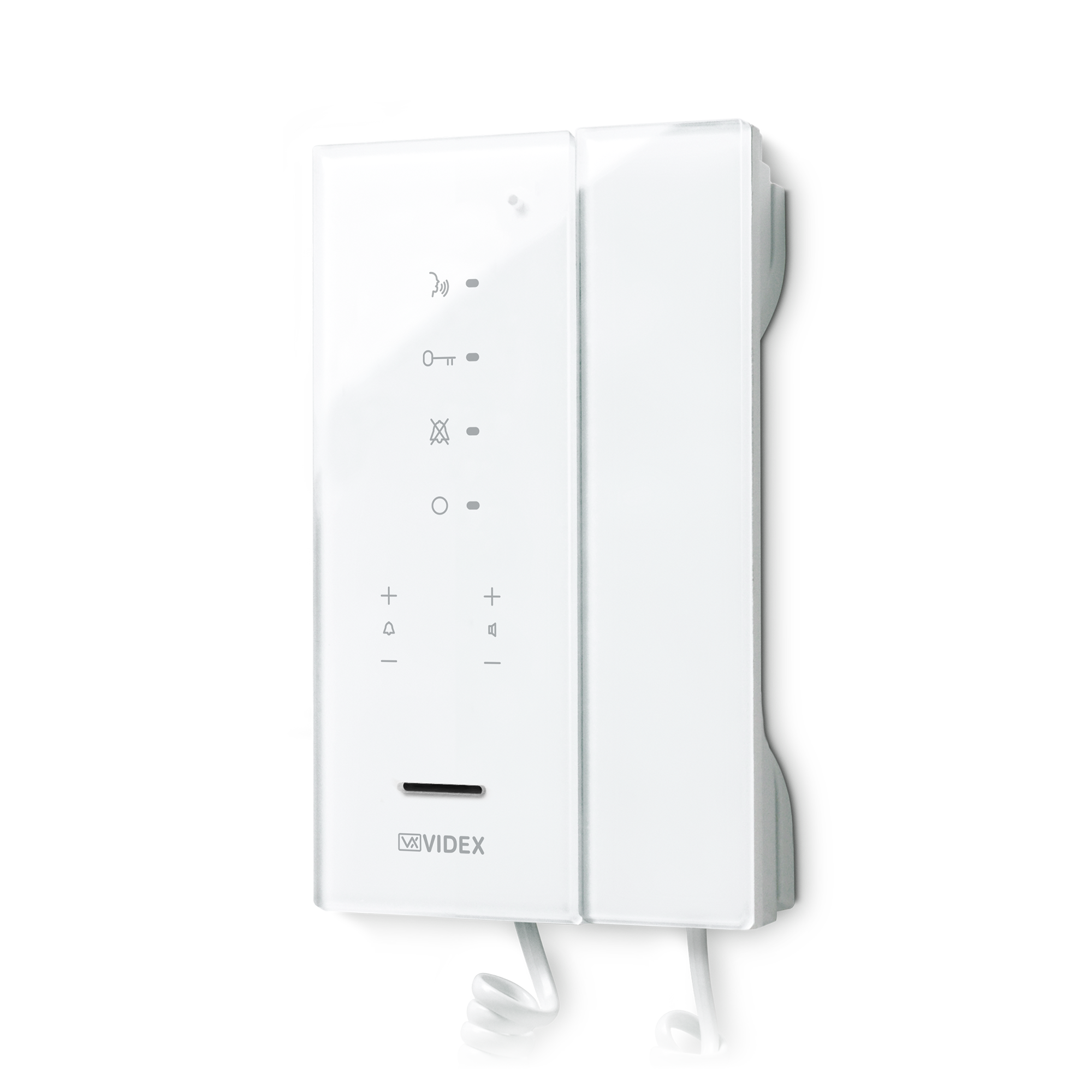 Intelligent Hands free intercom for the VX2200 digital system with touch sensitive buttons for “door open/concierge call”, “answer/camera recall”, “privacy” and “service” plus 4 buttons for volume adjustment and programming plus 4 LEDs related to the intercom operation. For the surface version only (Art. KRA76), a handset can also be used in addition to the handsfree mode.