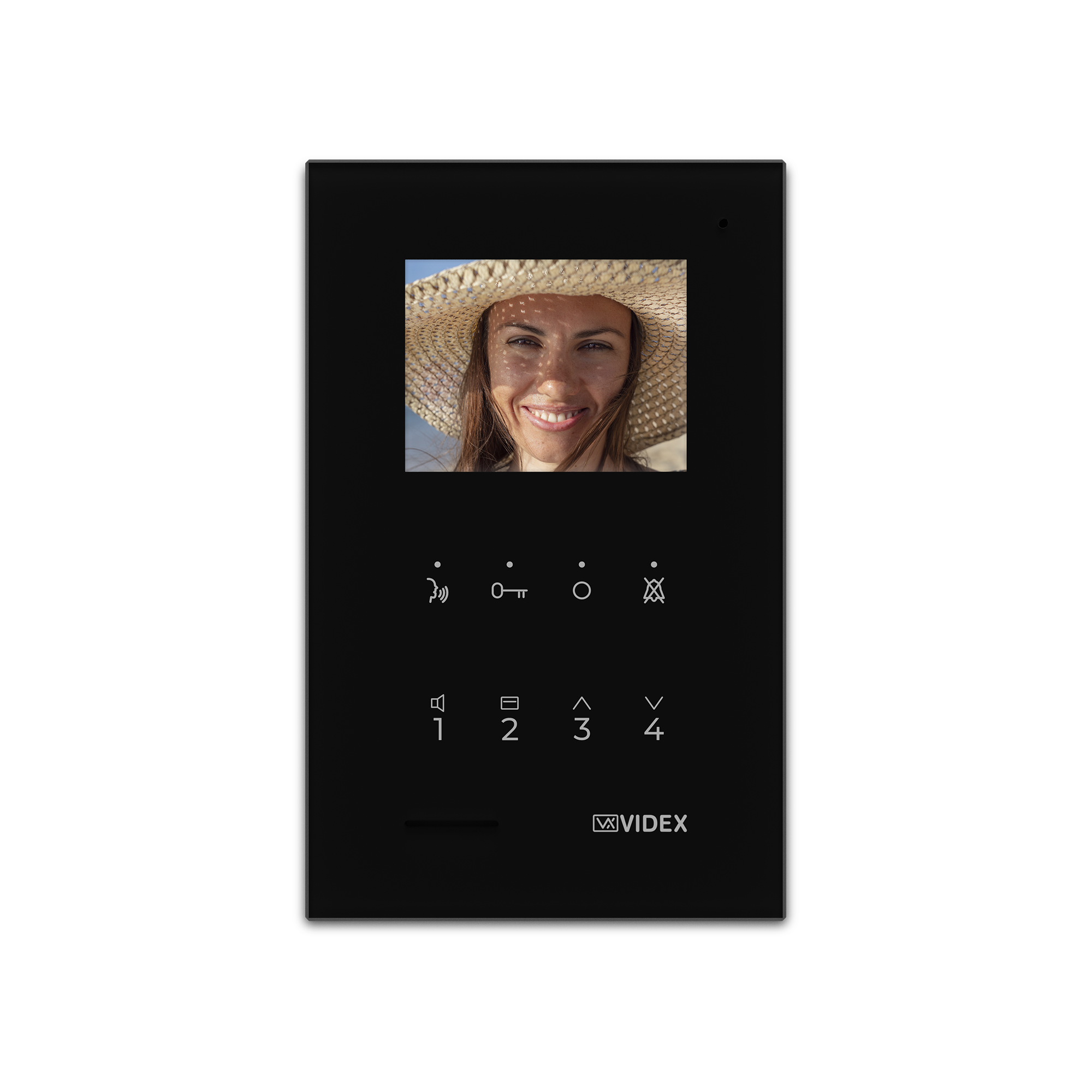 8 capacitive touch sensitive backlight buttons: “answer/camera recall/push to talk/end conversation”, “door open/concierge call”, “service button“, “privacy/reject call” plus other 4 buttons for programming, adjustments and intercommunication facility (available only between the Kristallo range of videophones and intercoms) that enables intercommunication between devices in the same apartment (same PHONE ID but different extension address) or between devices installed in different apartments (different PHONE ID).