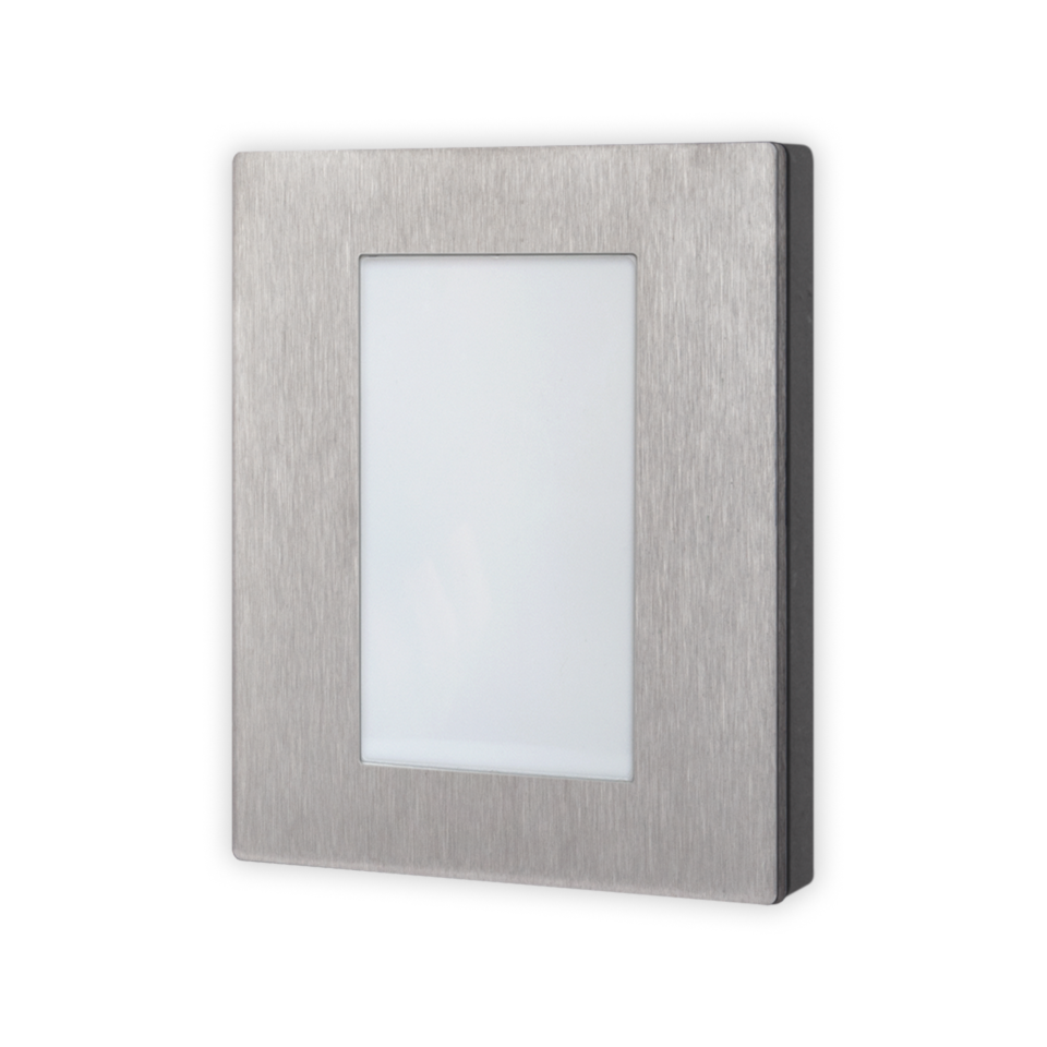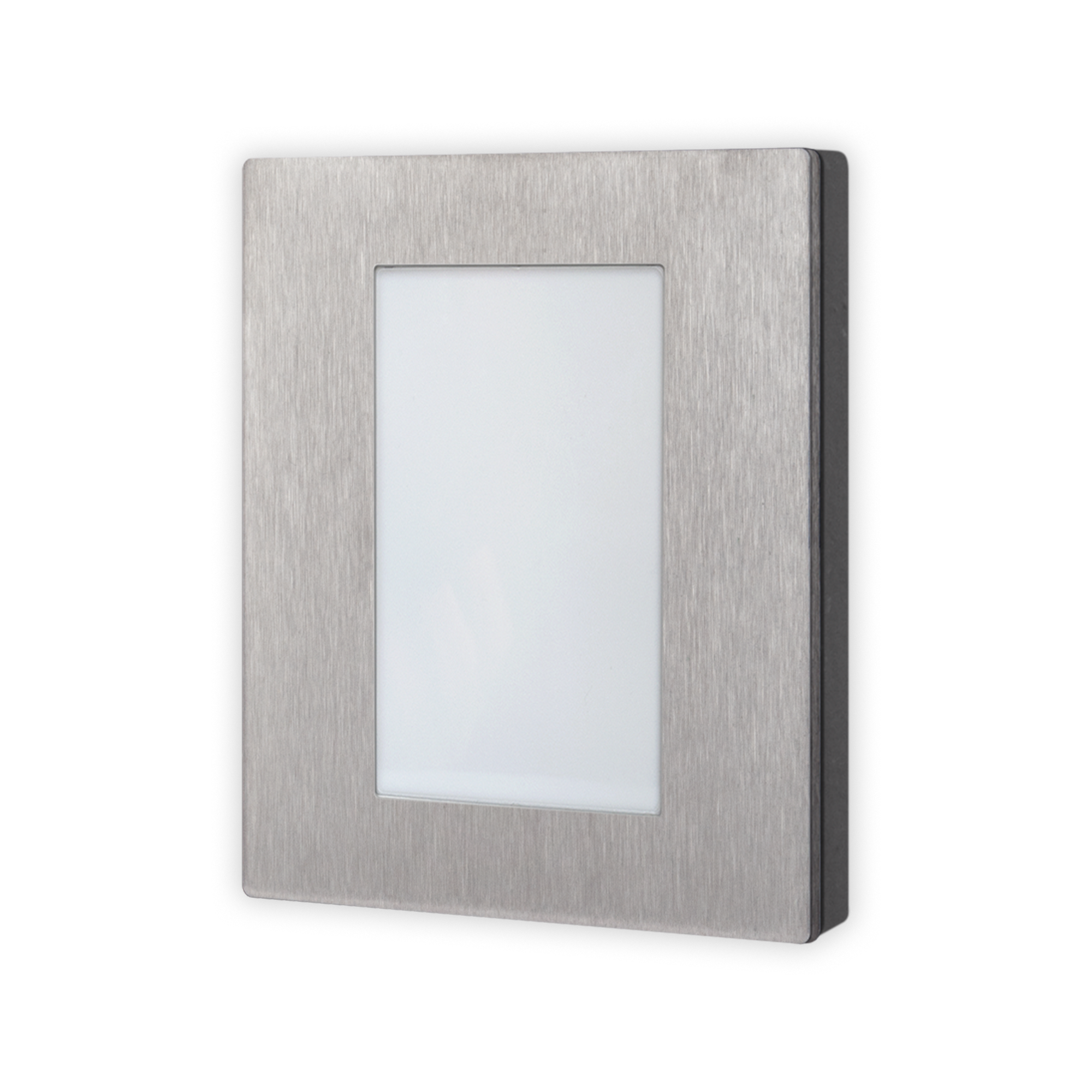 Information module 4000 Series for IPure, VX2200, VX2300 and GSM systems. Blue LED backlighting Frame in AISI 316 brushed stainless steel (marine grade) that provide durability in installations subject to atmospheric agents and near marine environments, transparent polycarbonate cover (52x85mm), writeable card (62x100mm). Vandal resistant plate with IK09 and IP65 protection rating. Operating temperature -20°/+60°C. Power supply 12V DC - 30mA. Dimensions: 103x120x43mm. 1 module.