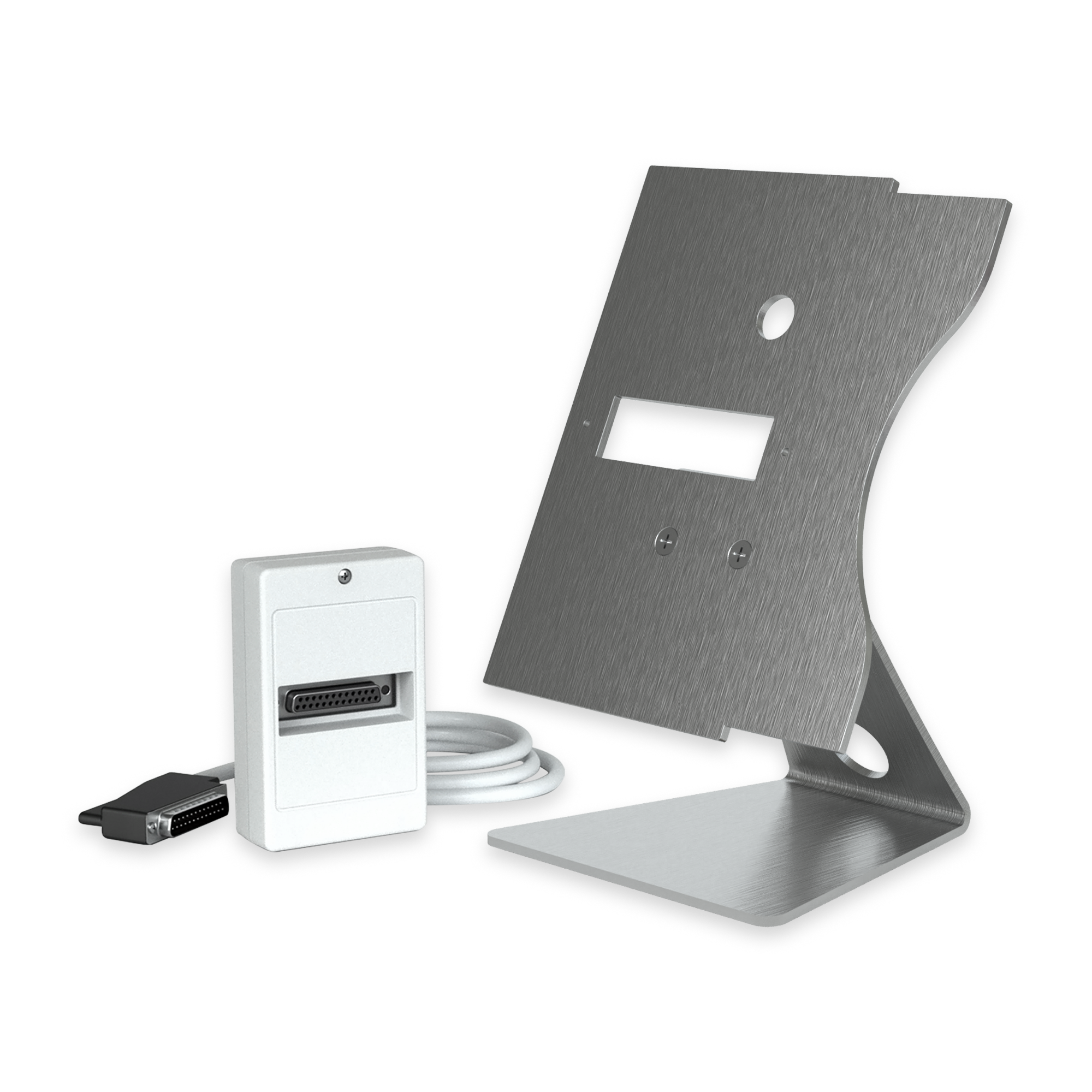 Base da tavolo per videocitofono KRV82/W comprensiva di borchia di connessione. Materiale: acciaio inox satinato.